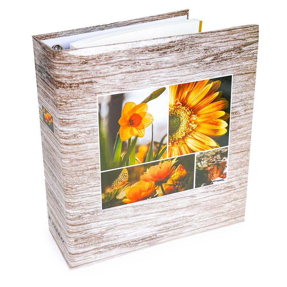 Samolepicí fotoalbum se kroužkovou vazbou. Album má 100 stran o rozměrech 26 x 29 cm a listech 22,5 x 28 cm.