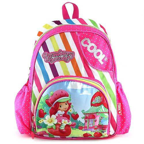 Batůžek disponuje hlavní prostornou komorou a přední kapsou na svačinu, jejichž zapínání je řešeno zipem. Po obou stranách batůžku kapsy na gumičku, zipy zdobené přívěsky v podobě jahůdek. Batoh je rovněž vybaven praktickým poutkem na zavěšení či přenášení v ruce.