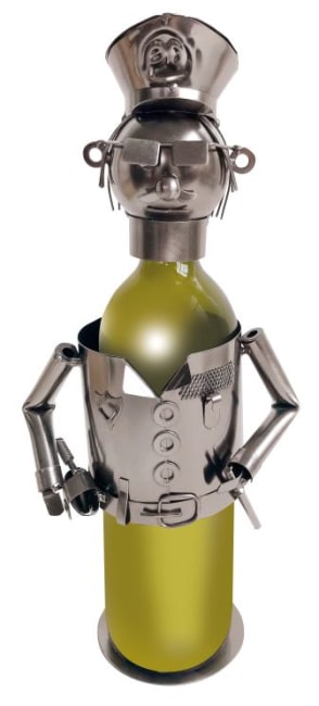 Stojan na jednu láhev vína . Doporučujeme jako tématický dárek.Láhve dobrého vína by se neměly po bytě toulat jen tak, zaslouží si něco lepšího. Co takhle originální stojan, ve kterém by působily trendy a zajisté by překvapily všechny hosty? Obdarujte oslavence tímto originálním stojanem.