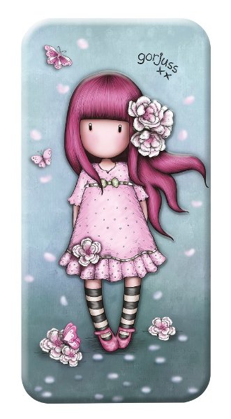 Tento plechový penál má pouze jeden hlavní prostor, bez možnosti uchycení psacích potřeb. Panenka Gorjuss je do penálu vlisovaná.