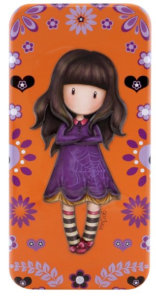 Tento plechový penál má pouze jeden hlavní prostor, bez možnosti uchycení psacích potřeb. Panenka Gorjuss je do penálu vlisovaná.