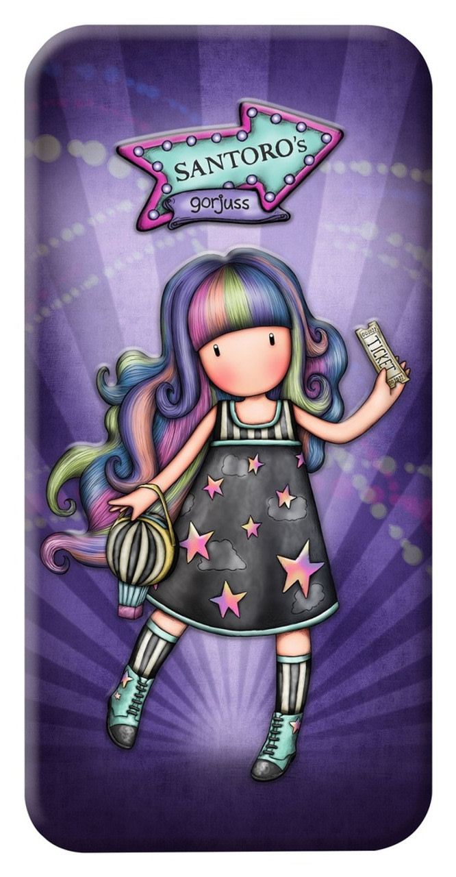 Tento plechový penál má pouze jeden hlavní prostor, bez možnosti uchycení psacích potřeb. Panenka Gorjuss je do penálu vlisovaná.