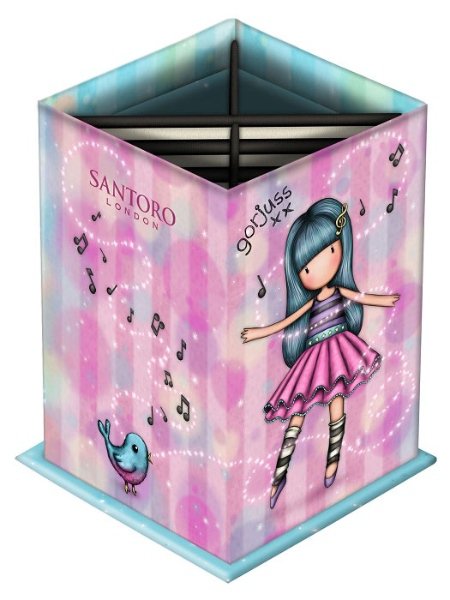 Tento stojánek je vyroben z tvrdého kartonu a každá jeho strana je ozdobená motivem Gorjuss. Vnitřní prostor je rozdělen přepážkami, které jsou dané do kříže, na čtyři stejně velké části. Stojánek bude na vašem stole vždy dobrým pomocníkem, při uspořádání vašich psacích potřeb.